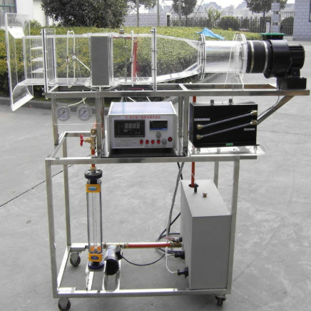 循環(huán)防腐水泵,轉(zhuǎn)子流量計(jì),翅片管式換熱器,風(fēng)洞實(shí)驗(yàn)段,離心式風(fēng)機(jī),自動(dòng)調(diào)節(jié)風(fēng)門,笛形管及差壓測(cè)風(fēng)速裝置,加熱由固體調(diào)壓模塊無級(jí)調(diào)節(jié),控制測(cè)試儀表箱,不銹鋼加熱水箱,巡檢儀顯示溫度、水和風(fēng)的阻力及風(fēng)速,不銹鋼臺(tái)架及控制屏。