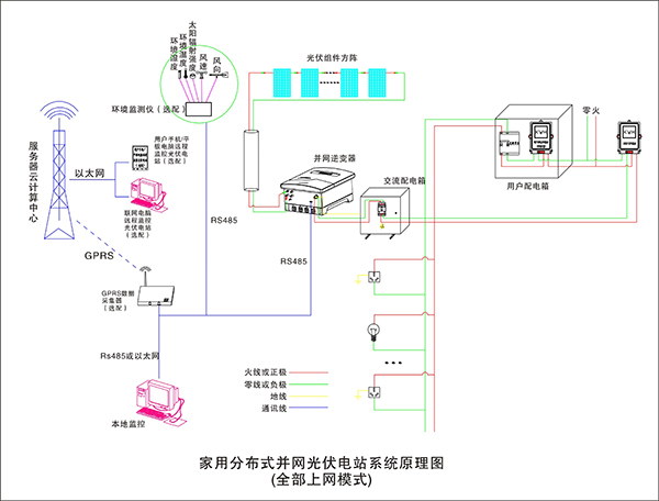 該系統(tǒng)為一套獨(dú)立供電系統(tǒng),系統(tǒng)由光伏組件、光伏直流電纜、光伏支架、充電控制器、鉛酸電池、逆變器等組成。