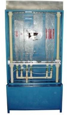 主要配置:循環(huán)水箱;水泵;溢流槽;扁氺槽及工件;鋼制角鐵支架;銅閥門調節(jié)組。