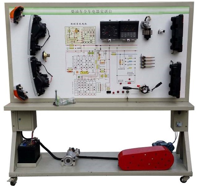 全車電路板試教板教學(xué)設(shè)備采用 全新東風(fēng)牽引車EQ2102 柴油機(jī)整車電器實物為基礎(chǔ),充分展示汽車儀表系統(tǒng)、燈光系統(tǒng)、雨刮系統(tǒng)、喇叭系統(tǒng)、發(fā)動機(jī)電器系統(tǒng)、起動系統(tǒng)和充電系統(tǒng)等汽車電器各系統(tǒng)的組成結(jié)構(gòu)和工作過程。