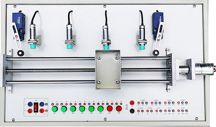 裝置采用臺(tái)式結(jié)構(gòu),是一套工業(yè)自動(dòng)化生產(chǎn)線小車運(yùn)動(dòng)控制過(guò)程的縮微模型,本裝置采用直流電機(jī)絲杠導(dǎo)軌傳動(dòng)系統(tǒng),實(shí)現(xiàn)傳動(dòng)和定位要求。造型精美、體積緊湊、重量輕、堅(jiān)固耐用,采用直流電機(jī)控制高質(zhì)量驅(qū)動(dòng)方案,有力保證系統(tǒng)穩(wěn)定、精密和快捷響應(yīng)能力。行程范圍400MM,裝有4種傳感器反饋控制,能滿足大中專院校可編程控制器技術(shù)的教學(xué)、課程設(shè)計(jì)和畢業(yè)設(shè)計(jì)。