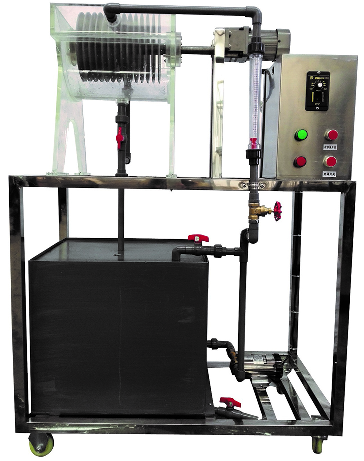 轉(zhuǎn)盤反應(yīng)器、水泵、調(diào)速電機(jī)、流量計(jì)、配水池、閥門管道、電路控制系統(tǒng)、框架及控制屏。