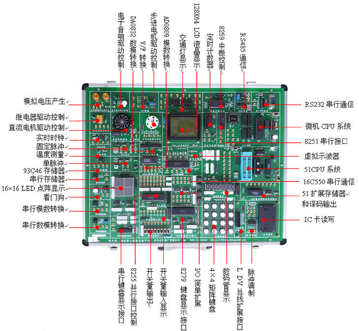 集成一體化單片機、微機接口綜合實驗箱綜合51單片機系統(tǒng)和8088微機原理接口系統(tǒng)為一體化設計的實驗平臺,根據(jù)單片機和微機接口實驗教學的特點出發(fā),全部系統(tǒng)和實驗模塊采用一體化設計方式,該實驗系統(tǒng)是目前最實用的一款單片機和微機接口綜合實驗教學平臺,適合各層次學生進行單片機原理和應用方面的實驗教學。主要元器件采用直插式焊接工藝,插線孔采用通孔,防止異物進入孔內后造成插孔堵塞后不易清理。