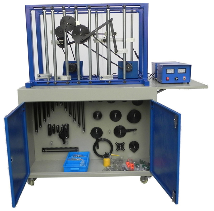 產(chǎn)品簡介: 該實驗臺主要由機架、電機、帶傳動裝置和一個規(guī)范化零件庫(零件箱)組成,零件庫內(nèi)配備有各種基本桿組、回轉(zhuǎn)副、移動副、凸輪、槽輪、齒輪、齒條以及聯(lián)接件等共計50種80多個規(guī)格。運動構(gòu)件有桿組、凸輪、槽輪、棘輪、齒輪、齒條等。