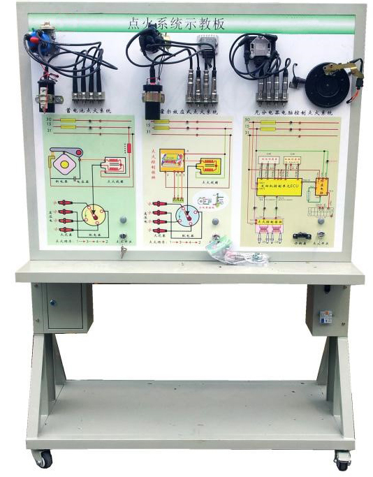汽油發(fā)動機(jī)點(diǎn)火系統(tǒng)保養(yǎng)模塊教具架該設(shè)備采用全新 三種典型(即:觸點(diǎn)式點(diǎn)火系統(tǒng)、霍爾式電子點(diǎn)火系統(tǒng)、無分電器分組點(diǎn)火系統(tǒng))的發(fā)動機(jī)點(diǎn)火系統(tǒng)的真實(shí)部件,充分展示發(fā)動機(jī)點(diǎn)火系統(tǒng)的組成結(jié)構(gòu)和工作過程。