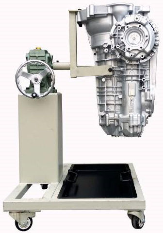 采用減速翻轉(zhuǎn)機構(gòu),可使變速器旋轉(zhuǎn)任意角度,并能任意位置鎖止,便于學(xué)生從不同的角度進行拆卸和裝配。