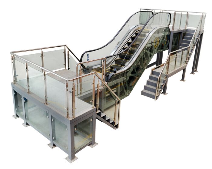 透明教學(xué)自動(dòng)扶梯模型,適用于職業(yè)院校、中職院校電梯技術(shù)專業(yè)學(xué)員進(jìn)行自動(dòng)扶梯梯級(jí)拆裝、操縱和維修保養(yǎng)實(shí)訓(xùn)教學(xué)訓(xùn)練。扶梯模擬實(shí)訓(xùn)裝置采用優(yōu)質(zhì)方管焊接密紋噴塑組裝成扶梯桁架,梯級(jí)踏板系統(tǒng)、扶手帶系統(tǒng)、曳引機(jī)系統(tǒng),設(shè)備臺(tái)架、安全檢測(cè)系統(tǒng),電氣控制控制系統(tǒng)等。